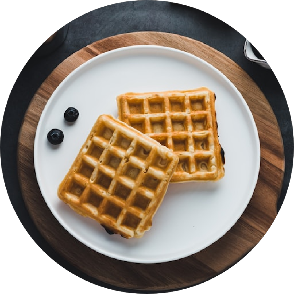 Crispy and fluffy waffles that come with classic toppings like whipped cream and berries.